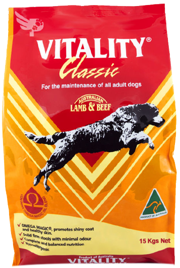 Vitality Classic Dog Food is a super premium dog food brand imported from Australia best recommended for daily maintenance of adult dogs to prevent skin problems. This dog food provides complete and balanced nutrition made from high quality Australian lamb and beef, selected wholegrain cereals, essential vitamins and minerals to support your dog’s overall health and well-being.