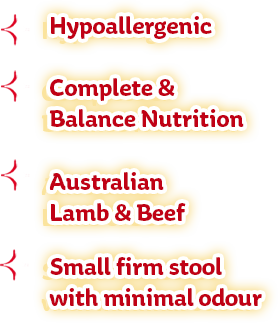 Vitality uses only premium Australian lamb and beef as main sources of protein. It does not use any meat from poultry products that may cause allergies to some dogs.